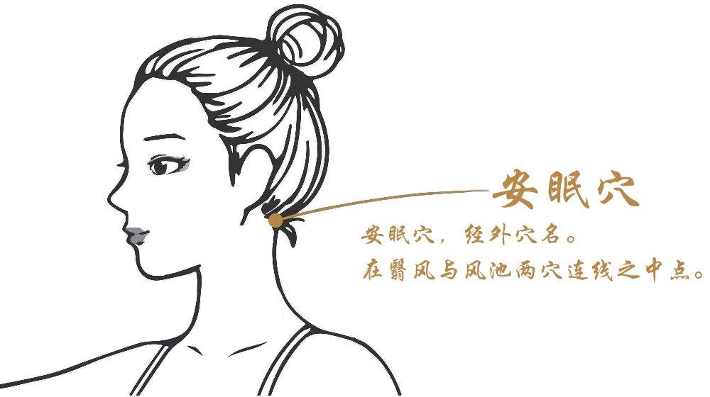 2、安眠穴:安眠穴位于耳垂后面,将三指并拢按在耳垂后的位置,大约中指的位置,按下去有酸胀感的地方即为安眠穴。每天对这个穴位揉按三五分钟,或者艾灸十分钟左右,可以很好的缓解失眠的情况。此外,安眠穴还能平肝熄风,对于耳鸣、头痛、健忘、烦躁、心悸等病症也有治疗作用。