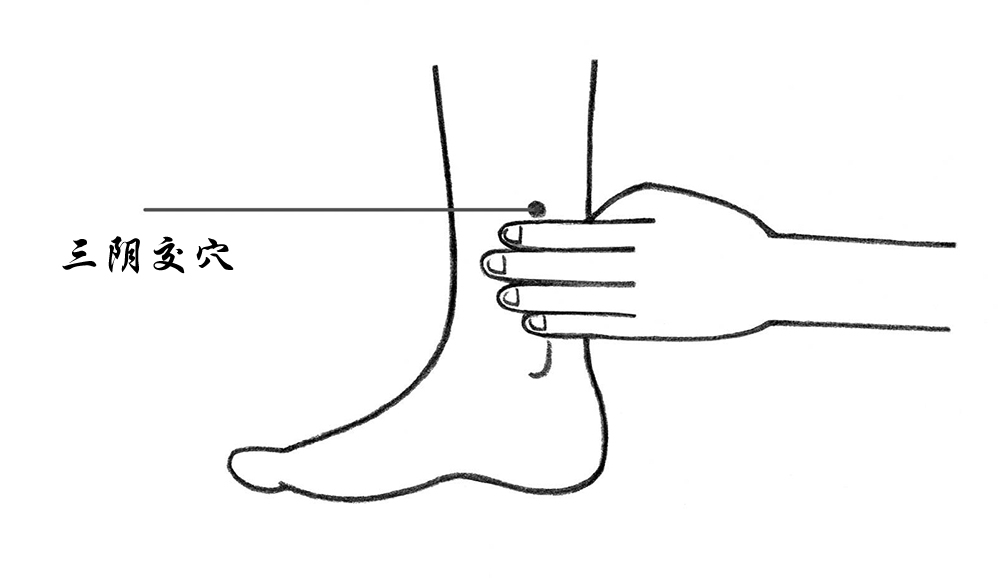 3、三阴交穴:可谓是我们日常见得最多的一个穴位了,这个穴位功效作用范围非常广泛,对于失眠也能够起到缓解治疗作用。三阴交穴的位置在脚踝内侧往上约三寸的地方,对这个穴位进行揉按刺激或艾灸等,可以治疗失眠、心悸的情况,还能够调理月经和治疗一些妇科疾病,对于一些肠胃疾病也能起到很好的治疗功效,是一个作用非常大的穴位,可以常按摩或艾灸。