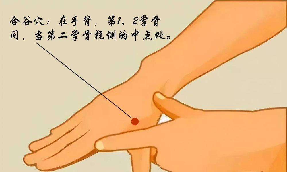 五、合谷穴,也称清热止痛穴:有清热解表、镇静止痛的作用,对头面部疾病,有很好的缓解和治疗作用。由于风热感冒引起的头痛发烧、上火牙疼,吃了药不能马上见效,均可通过指压合谷穴来缓解,力道以感到酸、麻、胀为宜。如果伴有发烧,可用瓷汤勺刮颈后部皮肤或用手指揪拉周围皮肤,直到发红发紫,有助于排出热毒,较快退烧。