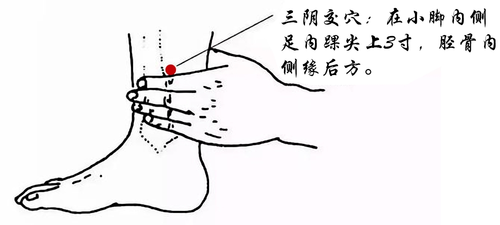 八、三阴交穴,也称滋阴养颜穴:三阴交被称为女人的穴位,按揉三阴交,有助于打通人体淤塞,保养子宫和卵巢,还有调月经、除斑、祛皱、祛痘,治疗皮肤过敏、皮炎、湿疹的作用。从经期前三天开始,每天按揉三阴交,坚持三个月,可以缓解月经不调、痛经等问题。按揉时,将拇指直立放在穴位上,先向下按压再揉,每次1分钟左右,停歇后再揉。因为按揉三阴交有调畅人体气血运转的作用,所以不适合孕妇。